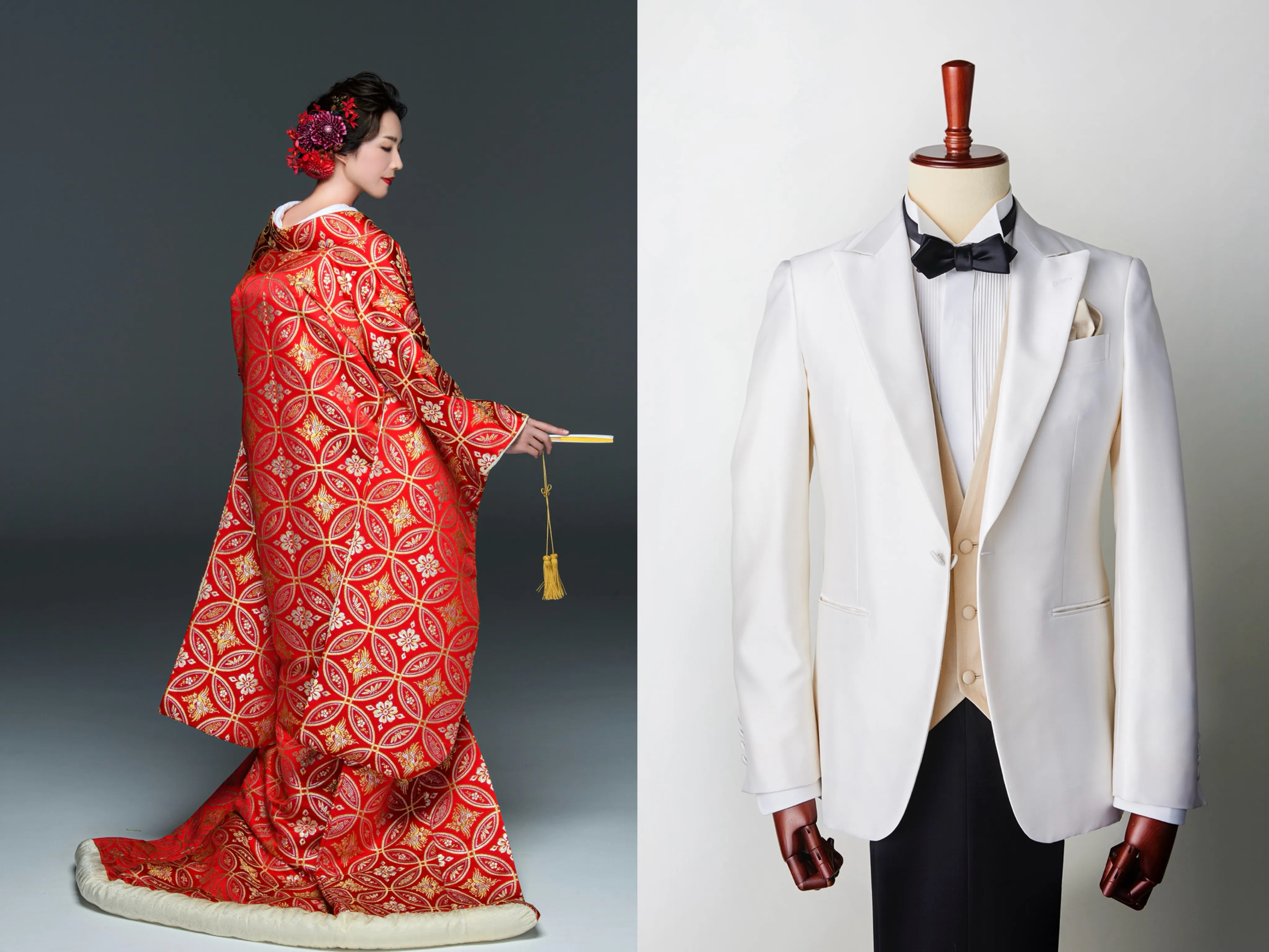 ドレス タキシード 和装を含む多彩な衣装の中から