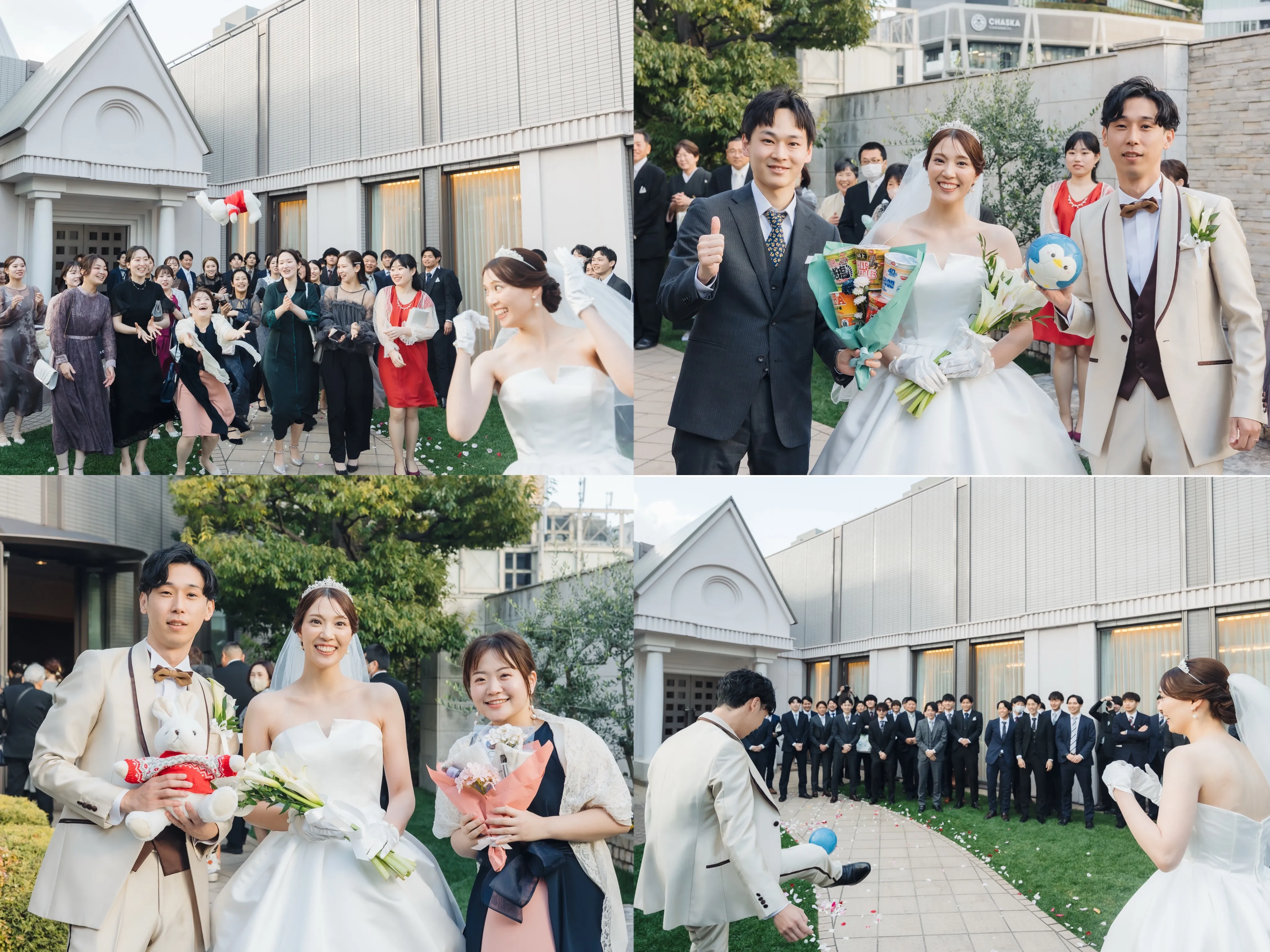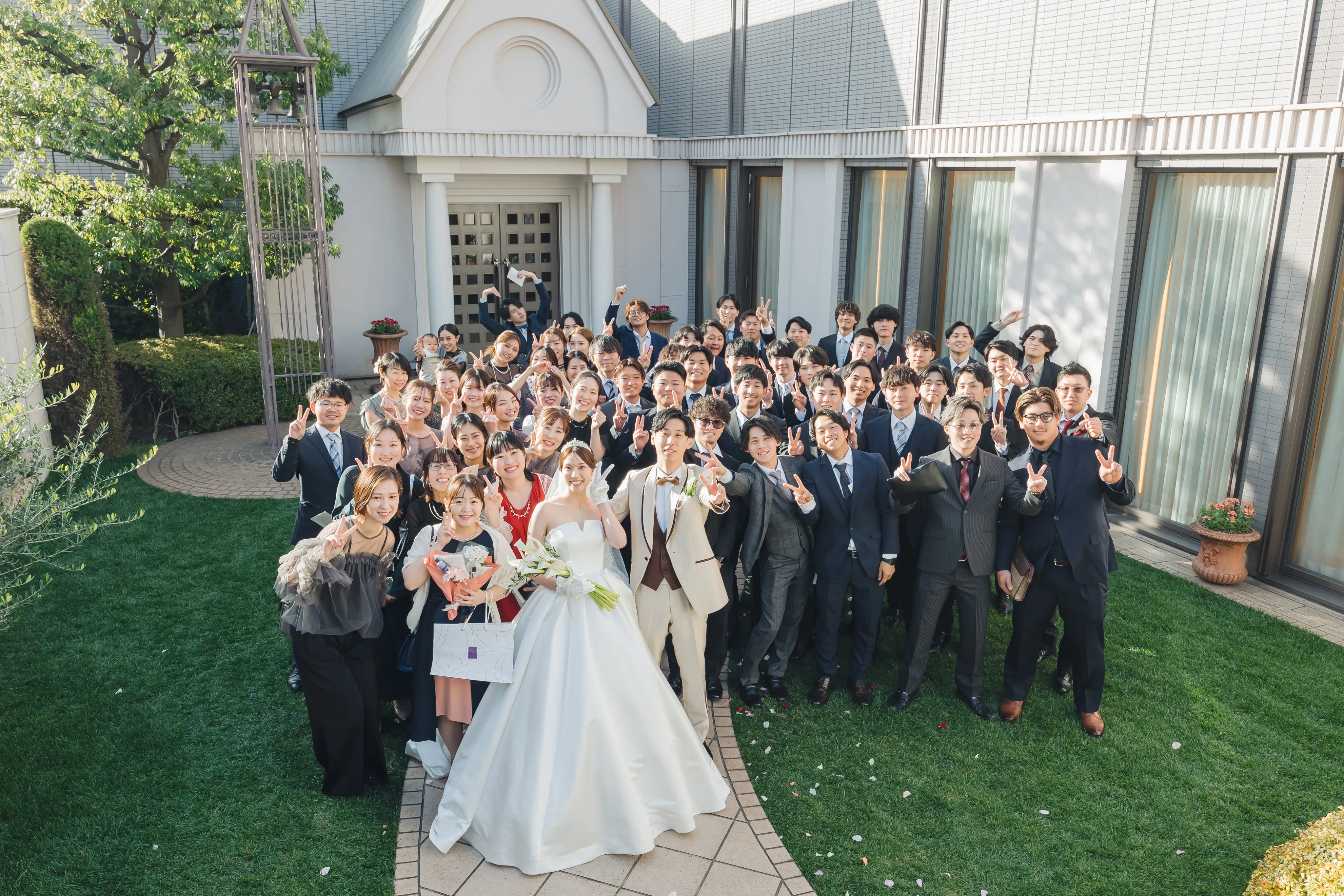 チャペル前のガーデンでフラワーシャワーと集合写真の撮影