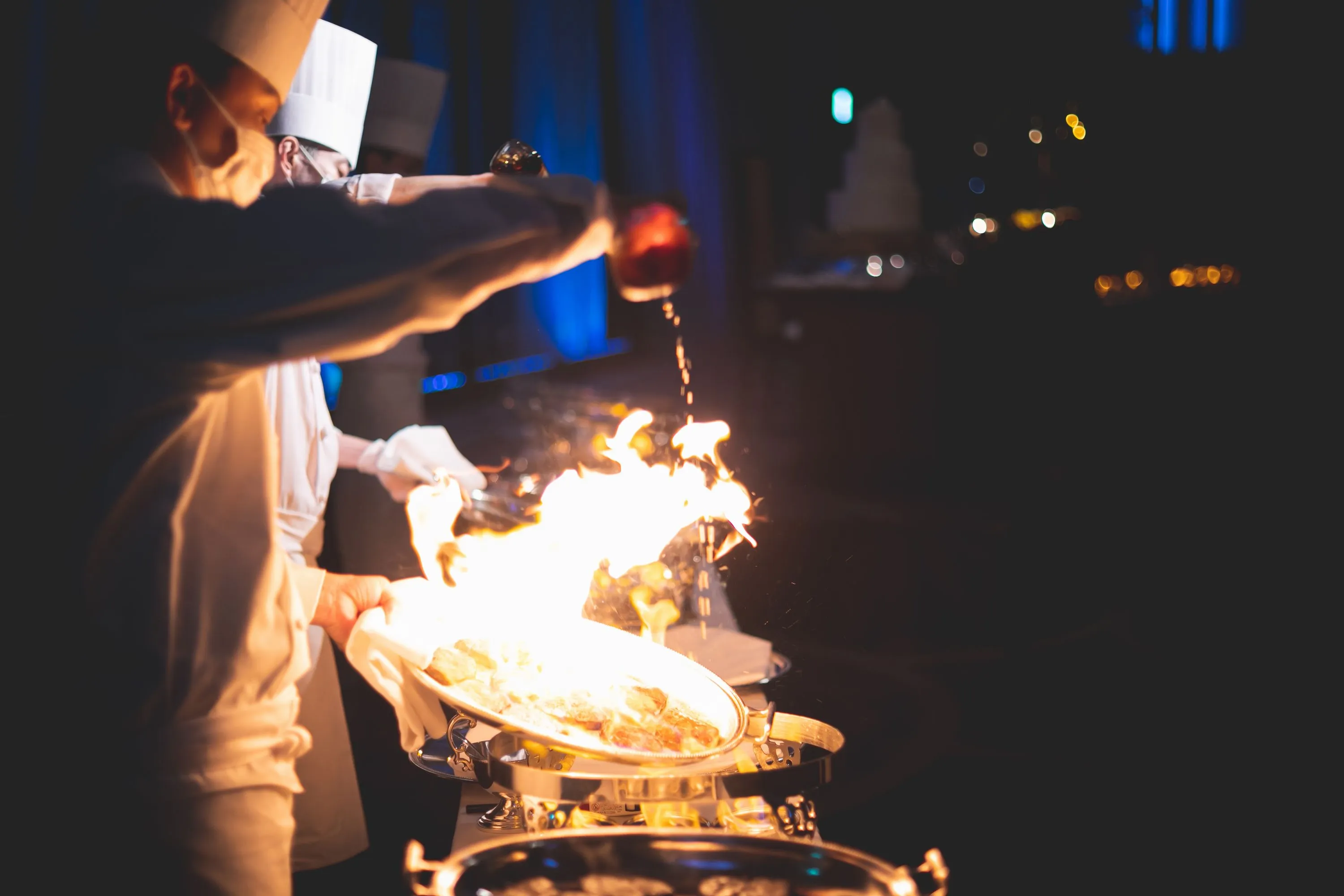メイン料理のフランベ演出もしたかったのですが