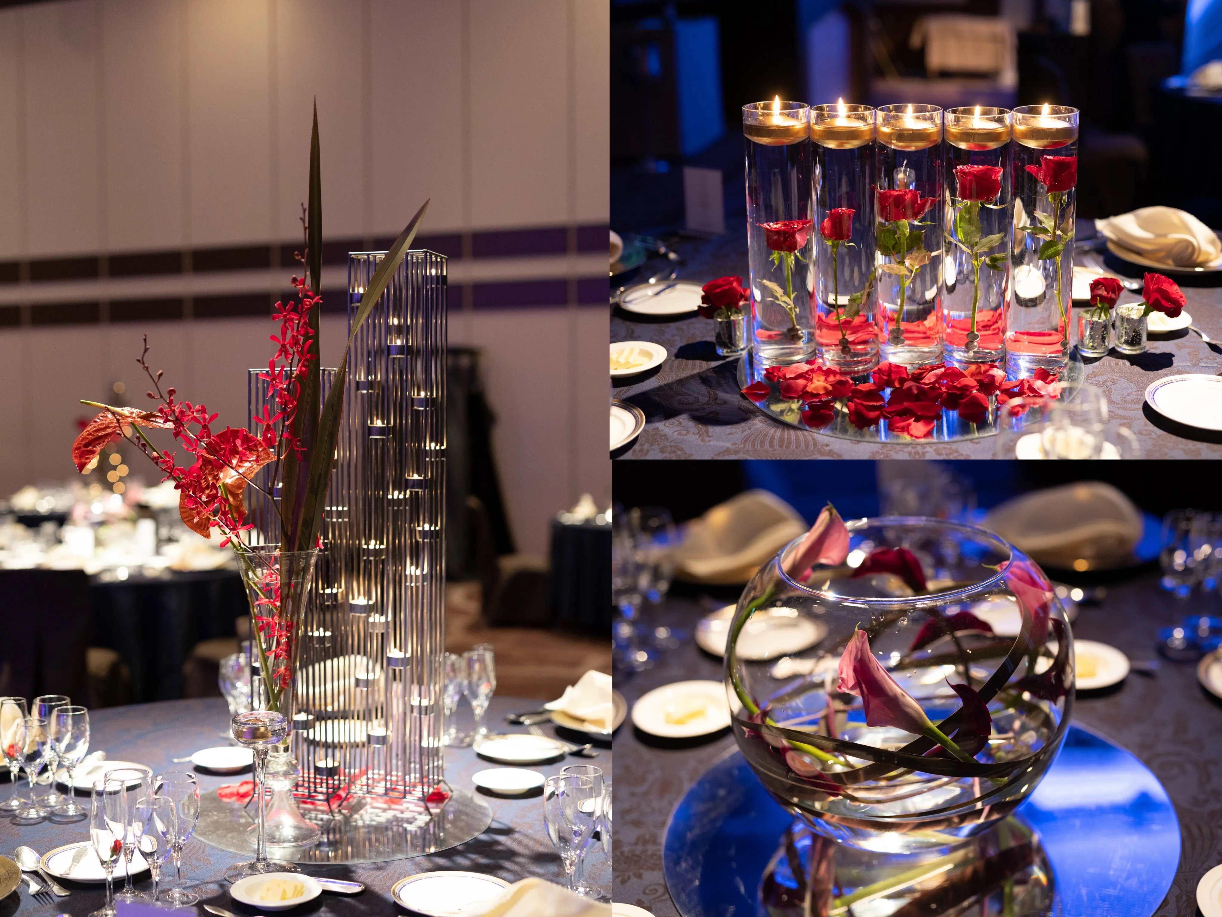 会場は少し暗めにお花が綺麗に見えるようにと