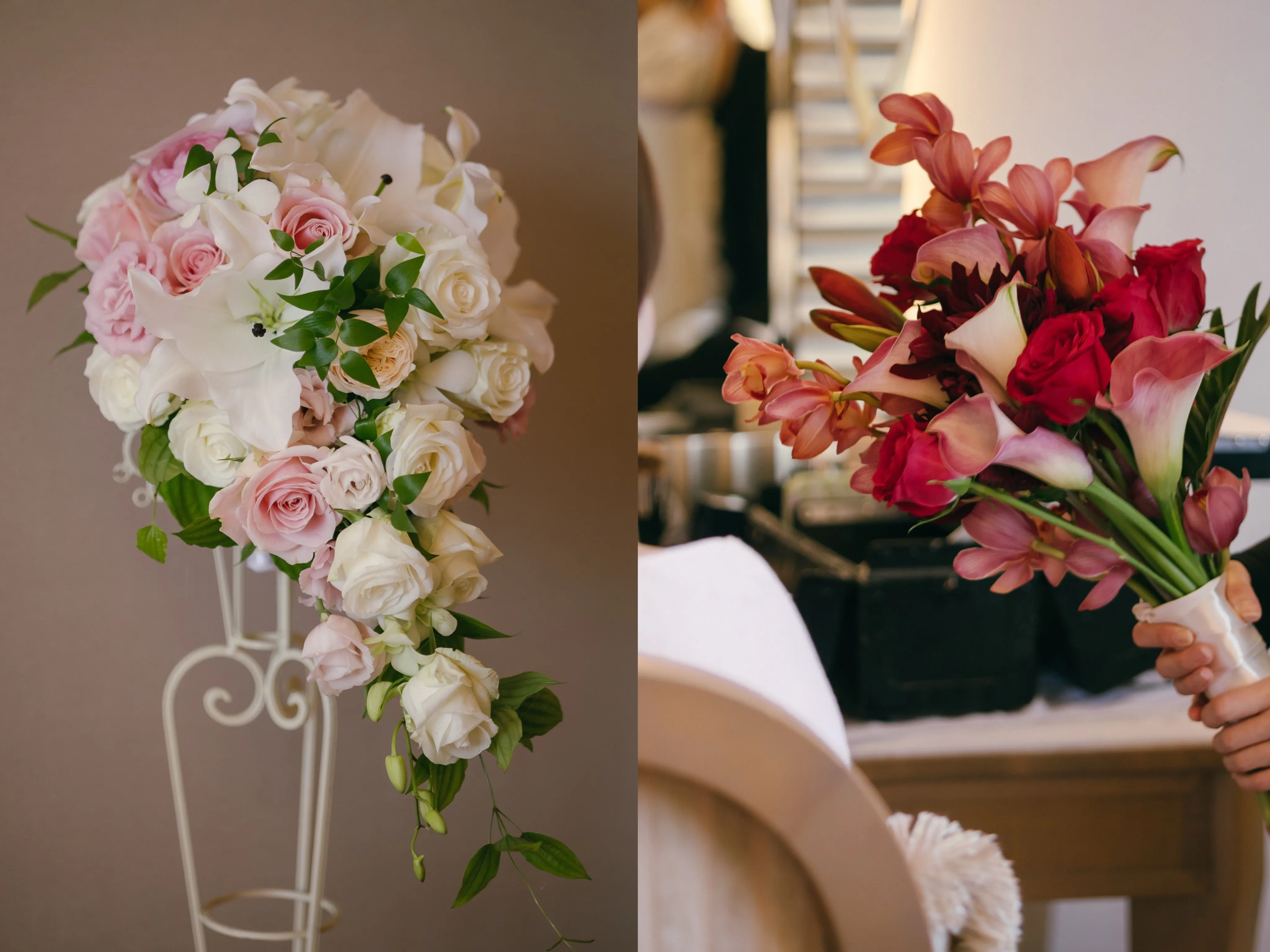 お顔がより小さく見えるように大きめのブーケを選びました